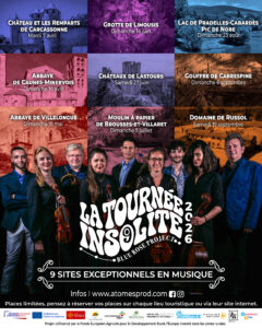 LA TOURNÉE INSOLITE 2026 ! Projet culturel et musical d’envergure qui s’apprête à transformer 9 sites patrimoniaux emblématiques du Pays Carcassonnais en scènes uniques.